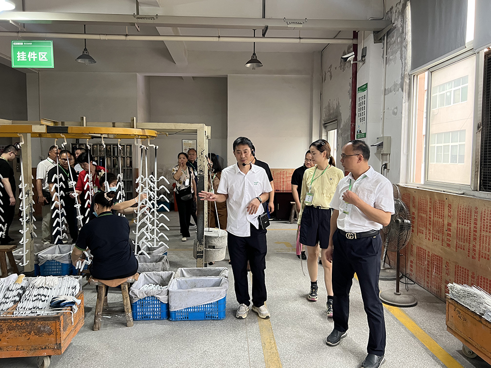 隨后,湖南省建筑門(mén)窗幕墻協(xié)會(huì)專家代表團(tuán)成員一同參觀了亞爾五金生產(chǎn)車(chē)間及展廳。亞爾五金集團(tuán)運(yùn)營(yíng)中心副總裁劉利群女士及技術(shù)工程師蔡寶成詳細(xì)介紹了亞爾五金集團(tuán)有限公司門(mén)窗五金配件的壓鑄、沖壓、拋光、噴涂、組裝、檢驗(yàn)、打包、發(fā)貨的完整過(guò)程。