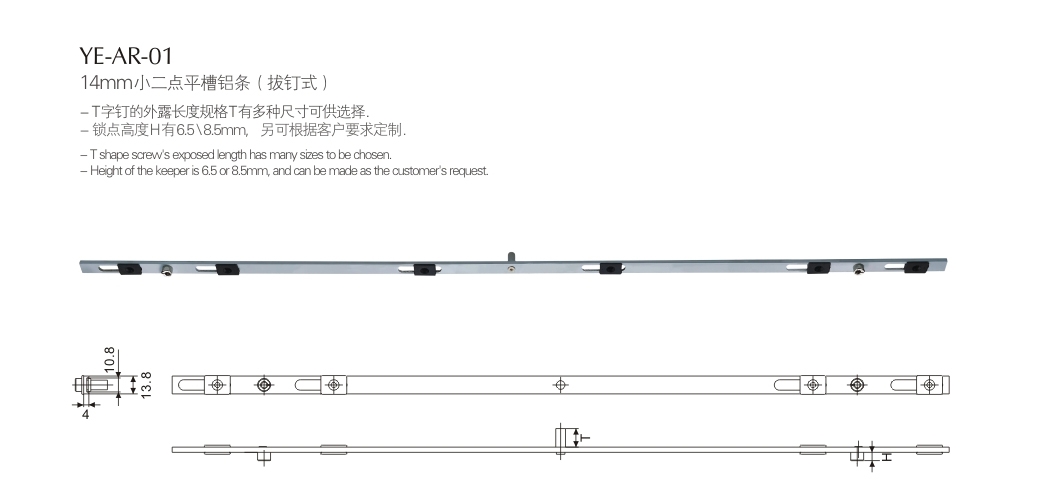 14mm小二點(diǎn)平槽鋁條(拔釘式)
